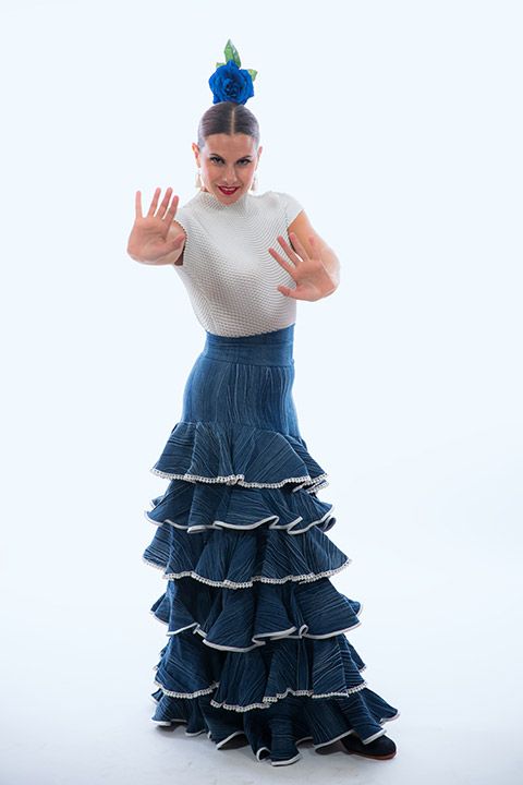 This skirt is sewed from an outstanding quality of denim layers in a fleece traditional shape, rich in fabric yet light and suitable for dancing movement.